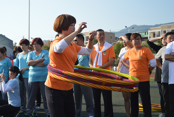 陳珍麗應(yīng)邀表演四個(gè)呼啦圈(本圖與比賽無關(guān))