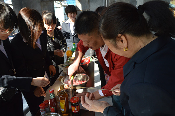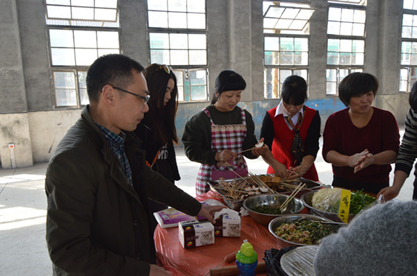這次活動(dòng)提倡女工人人動(dòng)手,共同參與“煮”婦活動(dòng),包五彩餃子。早上9點(diǎn)不到,場(chǎng)地內(nèi)已異常熱鬧,按預(yù)定的分組形式,“煮”婦們齊動(dòng)手,和面、穿烤串、包餃子,很快顏色多樣、形狀各異的餃子也紛紛的在大家眼前呈現(xiàn),“你綠色的好看”、“你的餃子做的圓嘟嘟的真可愛(ài)”、“你教我怎么搟皮吧”、“這個(gè)餃子大的”…… 你到我組看一看,我到你組瞅一瞅,大家互相探討包餃子的技術(shù),互相嬉鬧,歡笑聲此起彼伏。