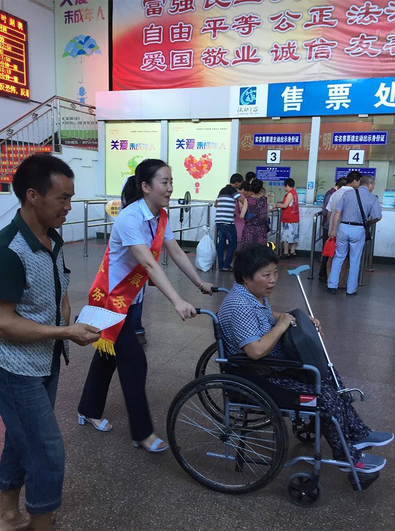 護(hù)送行動(dòng)不便旅客上車(chē)